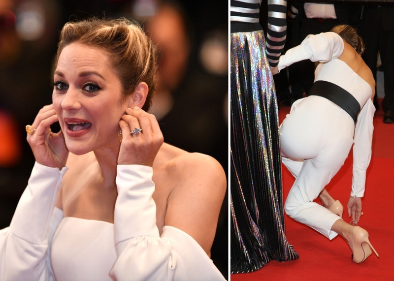 Marion Cotillard, the actress, made the choice to showcase her acrobatic skills by gracefully retrieving a valuable dangling earring that she lost while making her way down the red carpet at an event. In an attempt to reclaim her earring, she skillfully maneuvered herself in a tight-fitting white jumpsuit and even relied on the assistance of a nearby individual to maintain her poise. This impressive feat highlighted her finesse and agility.