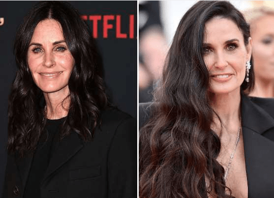 Do you recall when Monica from the TV show Friends desired a hairstyle similar to Demi Moore’s? It turns out, Monica, portrayed by Courtney Cox, bears a striking resemblance to her. It is undeniable that there are several similarities between their facial features.